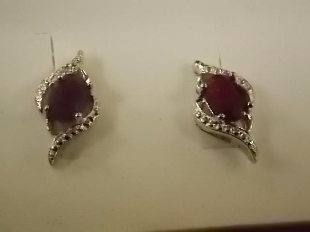 EARRINGS - NEW 1.5 TCW OVAL FACET RUBIES & DIAMONDS IN STERLING SILVER SETTING - POST & BUTTERFLY - INCLUDES CERTIFIED APPRAISAL $500 - W-32