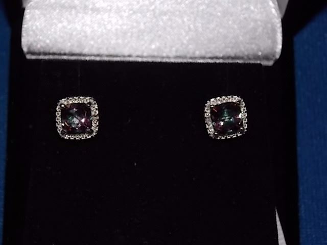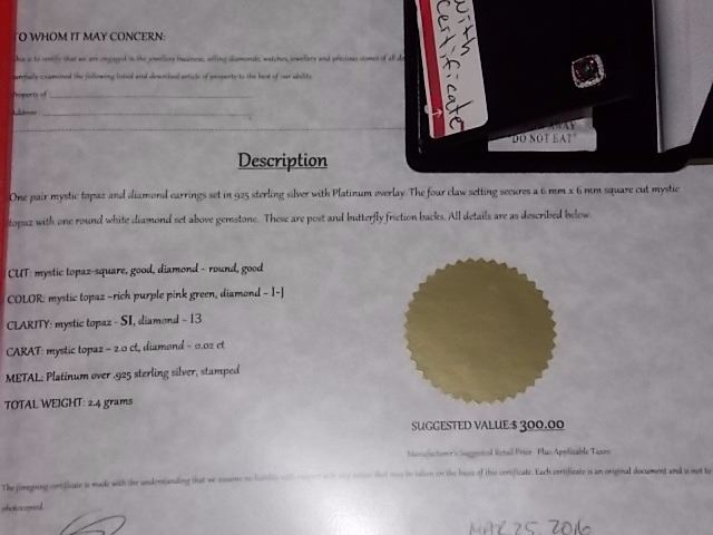 EARRINGS- NEW 2 CTW PRINCESS FACETED MYSTIC TOPAZ & DIAMOND IN STERLING SILVER SETTINGS - INCLUDES CERTIFICATE $300