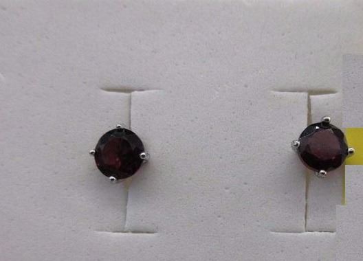 EARRINGS - NEW 2 TCW ROUND FACETED GARNETS IN STERLING SILVER SETTING - POST & BUTTERFLY BACKING