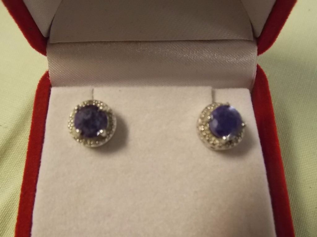 EARRINGS - NEW - RICH DEEP BLUE SAPPHIRE AND GENUINE DIAMONS IN STERLING SILVER SETTING - PLATINUM OVERLAY FOR DURABILITY - INCLUDES CERTIFICATE $350 - W-16