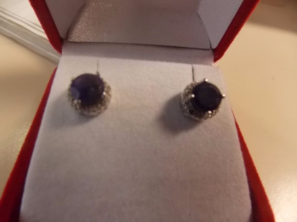 EARRINGS - NEW - RICH DEEP BLUE SAPPHIRE AND GENUINE DIAMONS IN STERLING SILVER SETTING - PLATINUM OVERLAY FOR DURABILITY - INCLUDES CERTIFICATE $350 - W-16