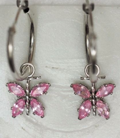 EARRINGS - PINK CUBIC ZIRCONIA IN 14K GOLD BUTTERFLY DESIGNED SETTING - RETAIL ESTIMATE $600
