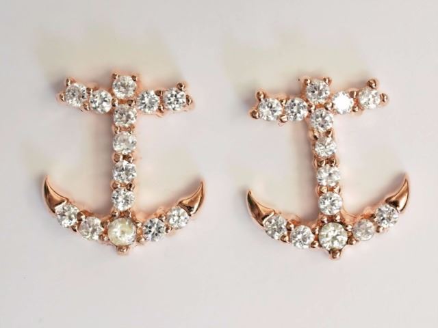 EARRINGS - TOTAL OF 28 ROUND FACETED CUBIC ZIRCONIA IN STERLING SILVER ANCHOR DESIGNED SETTING WITH YELLOW GOLD OVERLAY - RETAIL ESTIMATE $200