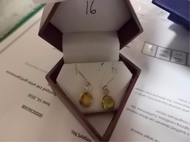 EARRINGS- YELLOW & WHITE SAPPHIRES IN 14K YELLOW GOLD SETTING - WITH CERTIFICATE $1233