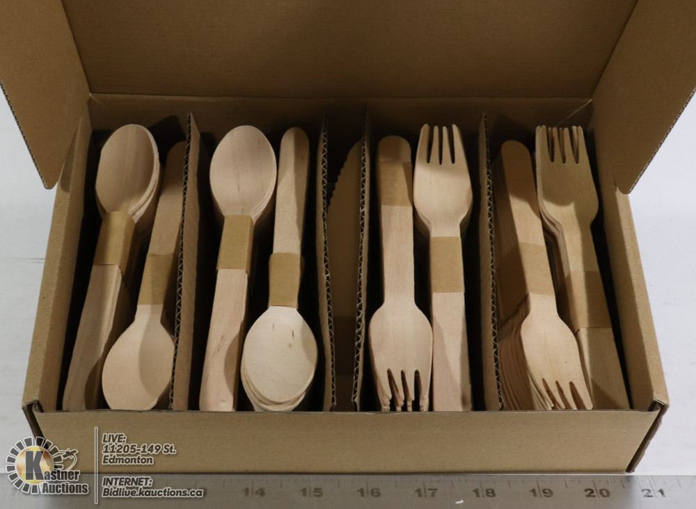100 SPOONS, 100 FORKS, 20 KNIVES MADE FROM 100% BIRCHWOOD
