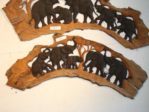 CARVING OF AN ELEPHANT FAMILY WITH A TREE IN THE MIDDLE OF THEM 50" X 23"