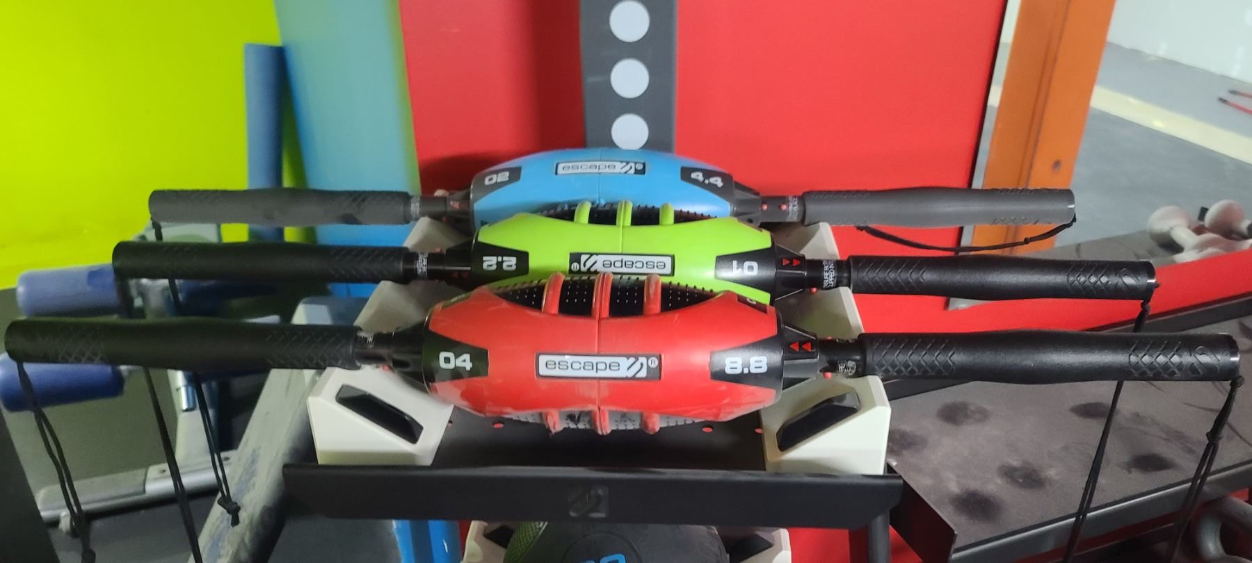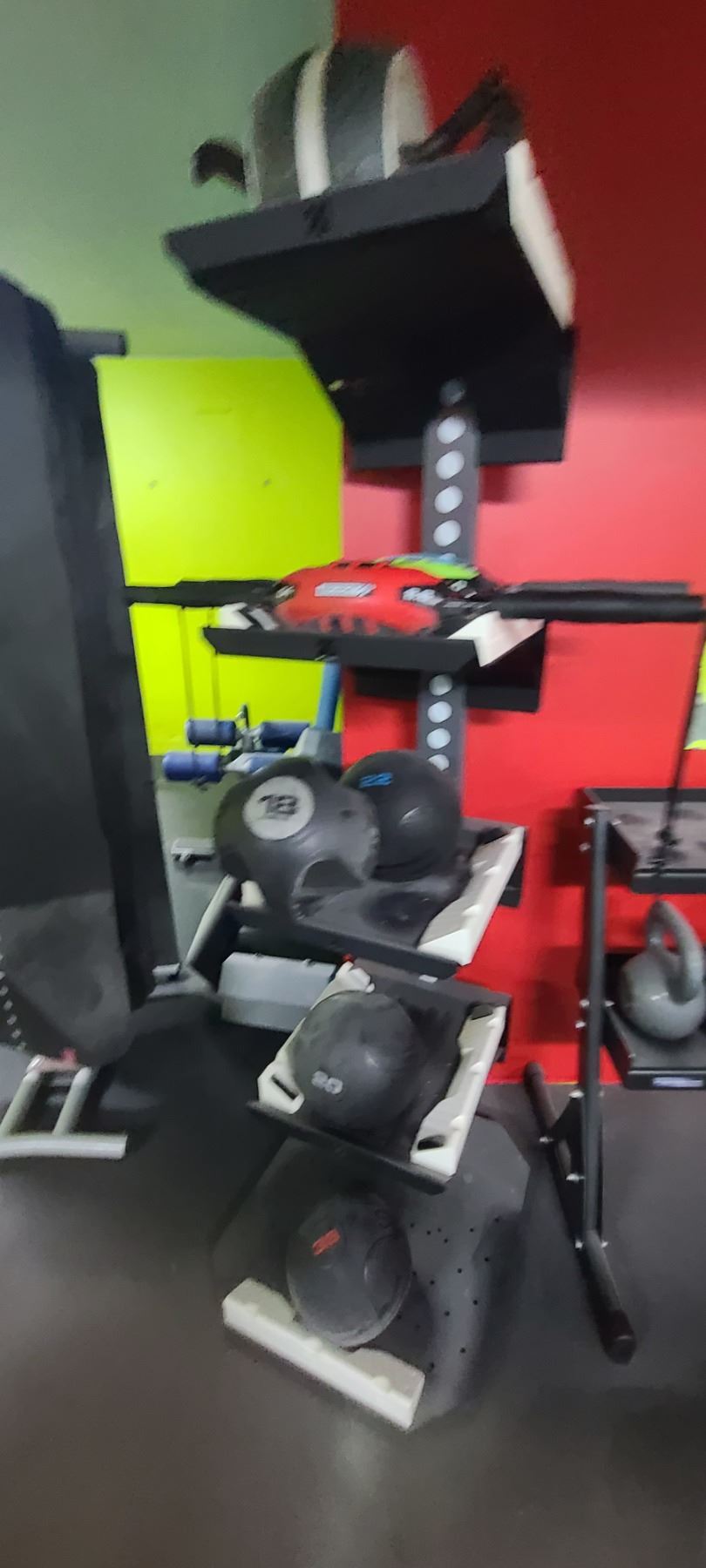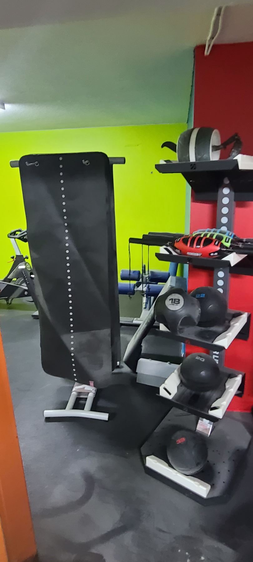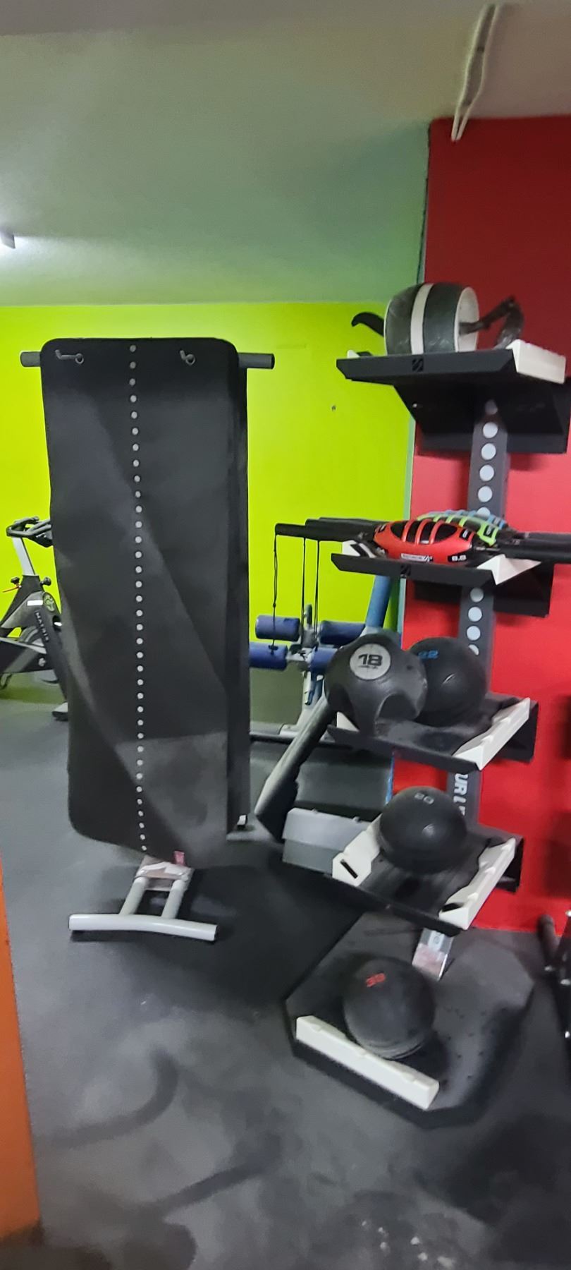 ESCAPE YOUR LIMITS RACK WITH 20, 22, 30KG AND ONE 18LBS MEDICINE BALLS AND ESCAPE CORE MOMENTUM TRAINERS - PLUS RACK WITH SEVEN MATS, AND REEBOK STEPPER