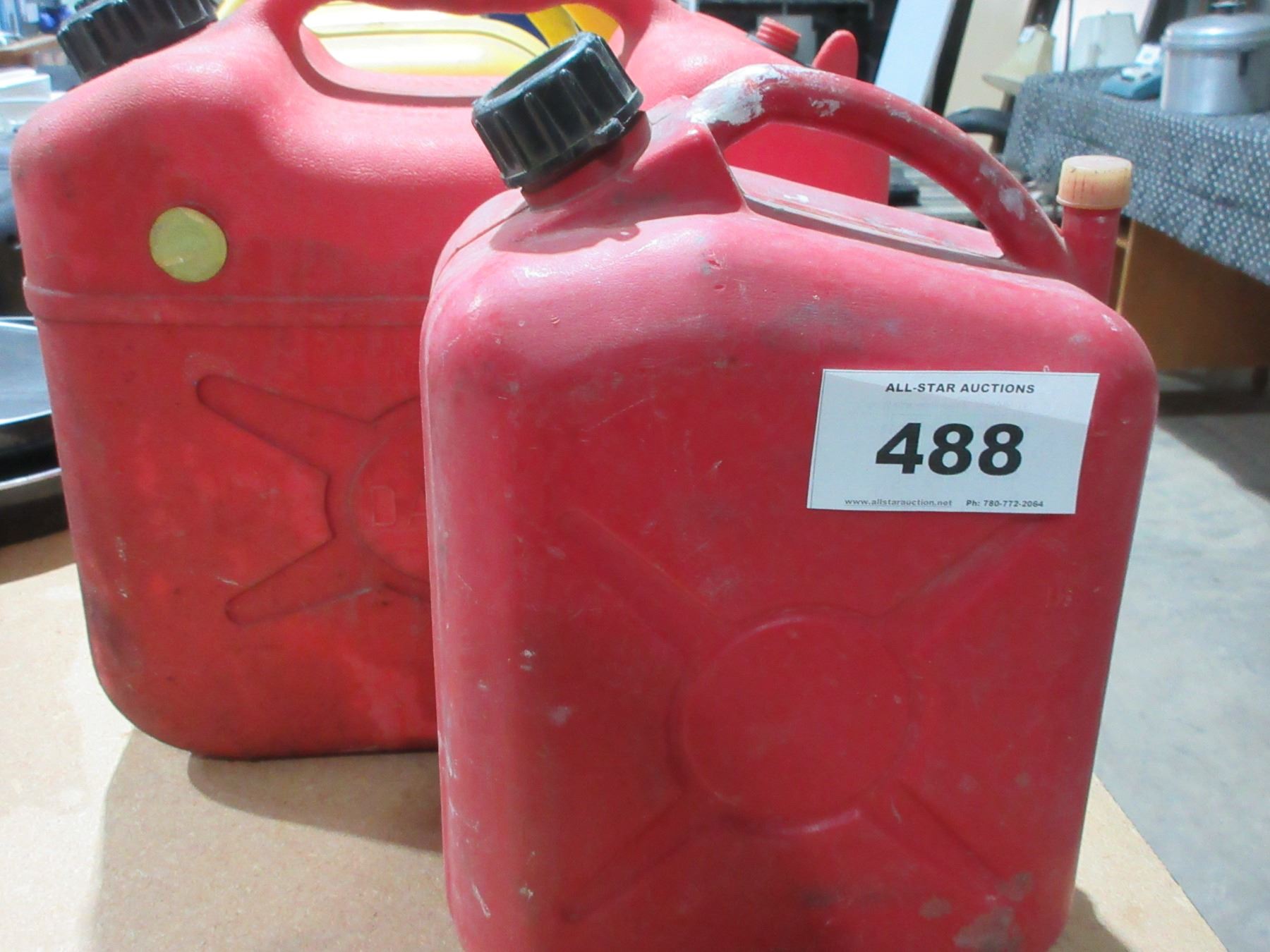 ESTATE: 2 RED JERRY CANS & FOLDING CAMPING CHAIR