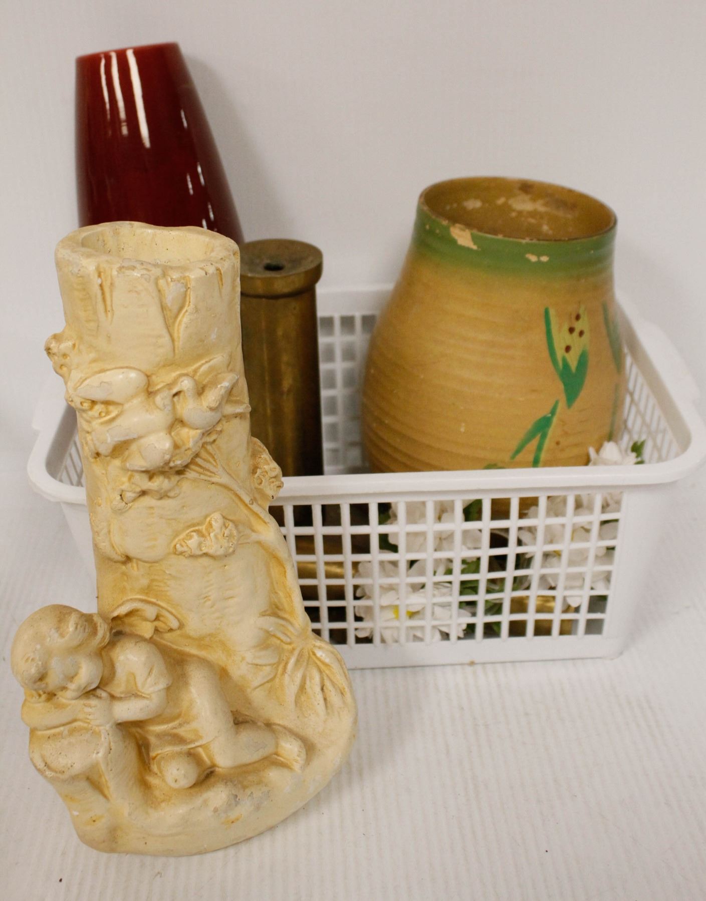 ESTATE BIN WITH ANTIQUE ENGLISH VASES AND MORE