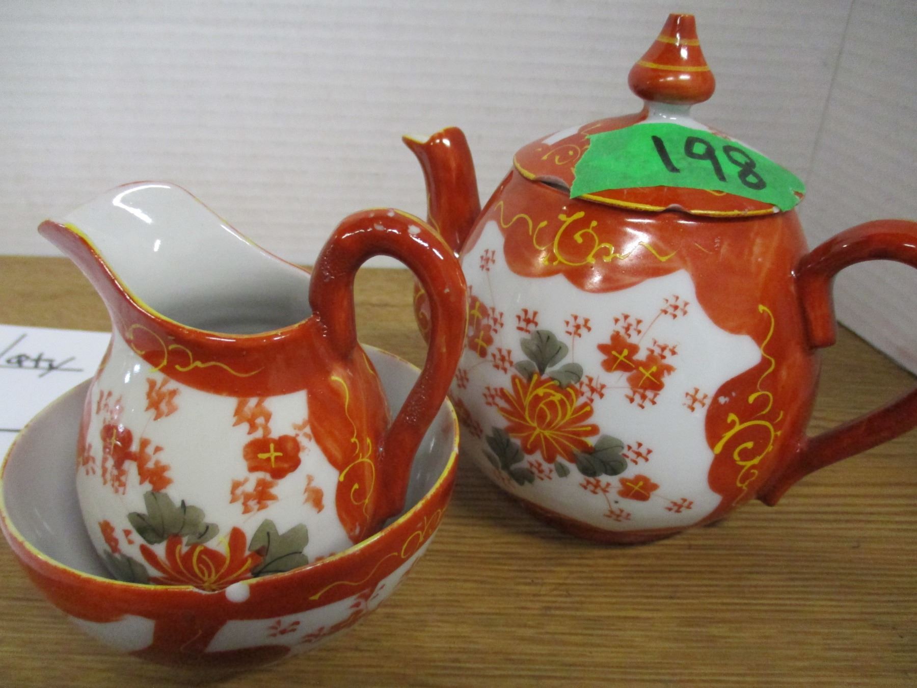 ESTATE: ORANGE DESIGN TEAPOT, CREAMER & CUP
