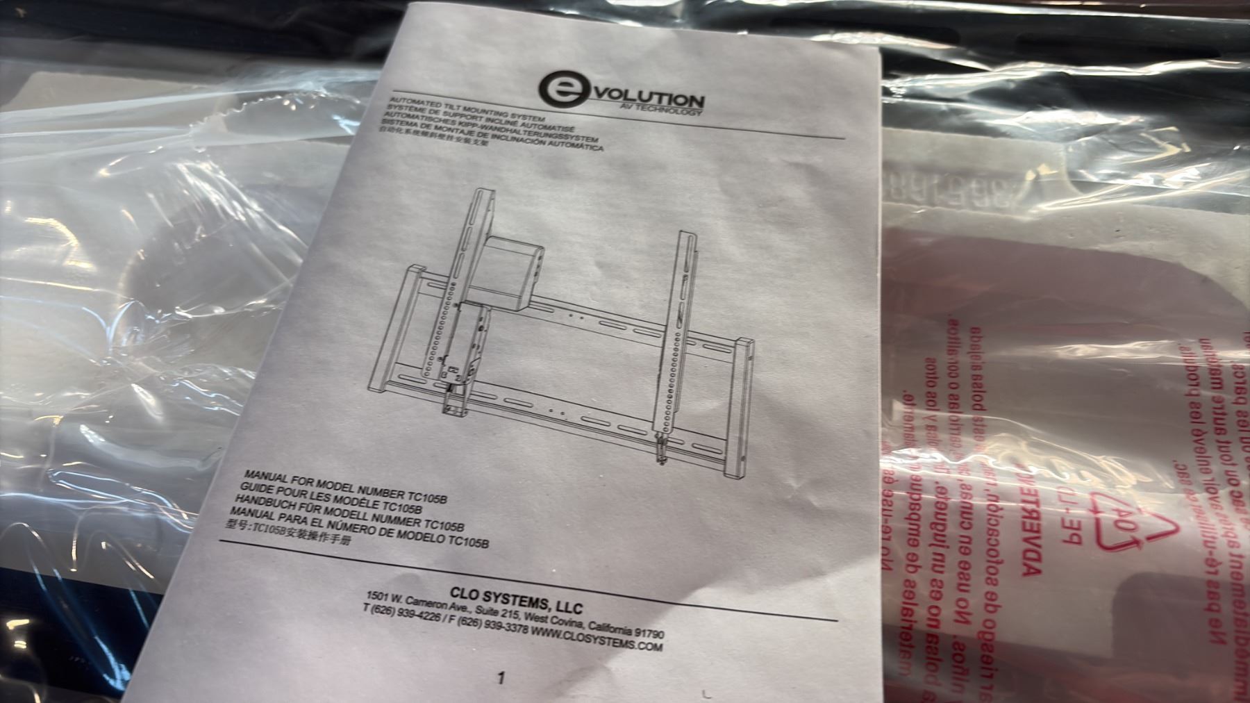 EVOLUTION MODEL TC 105B TV MOUNT