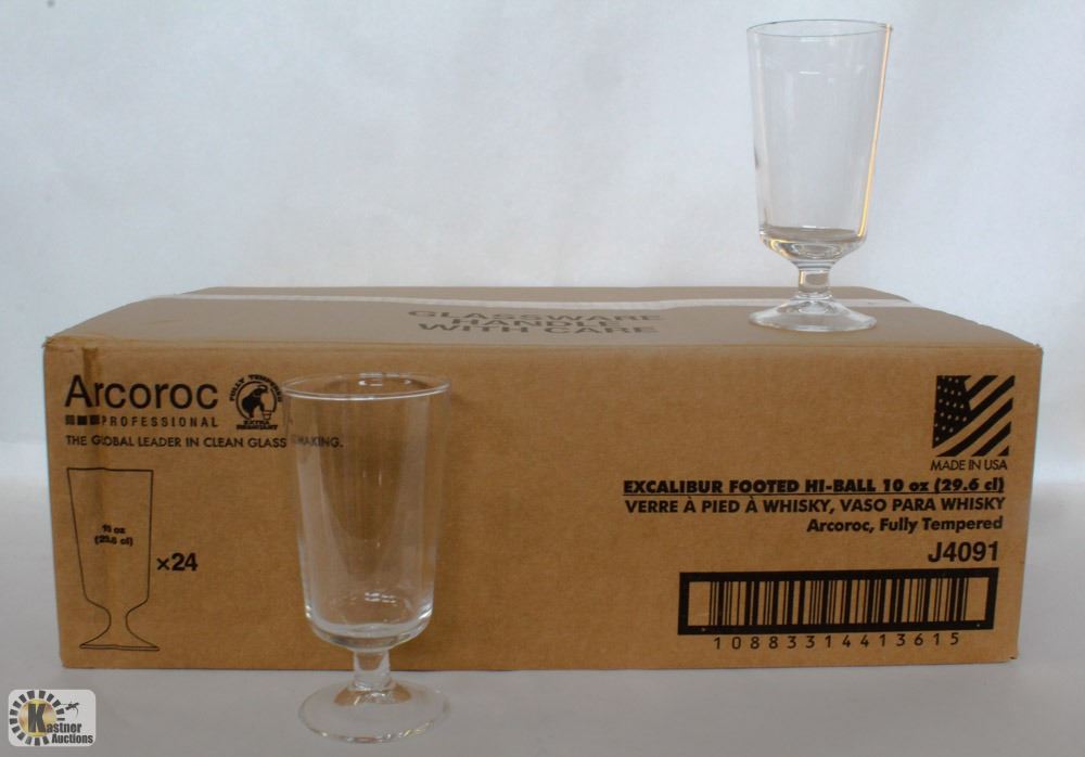 ARC06 - NEW, 1 CASE OF 24 J4091 EXCALIBUR 10 OZ. FOOTED HI-BALL GLASS, FULLY TEMPERED.