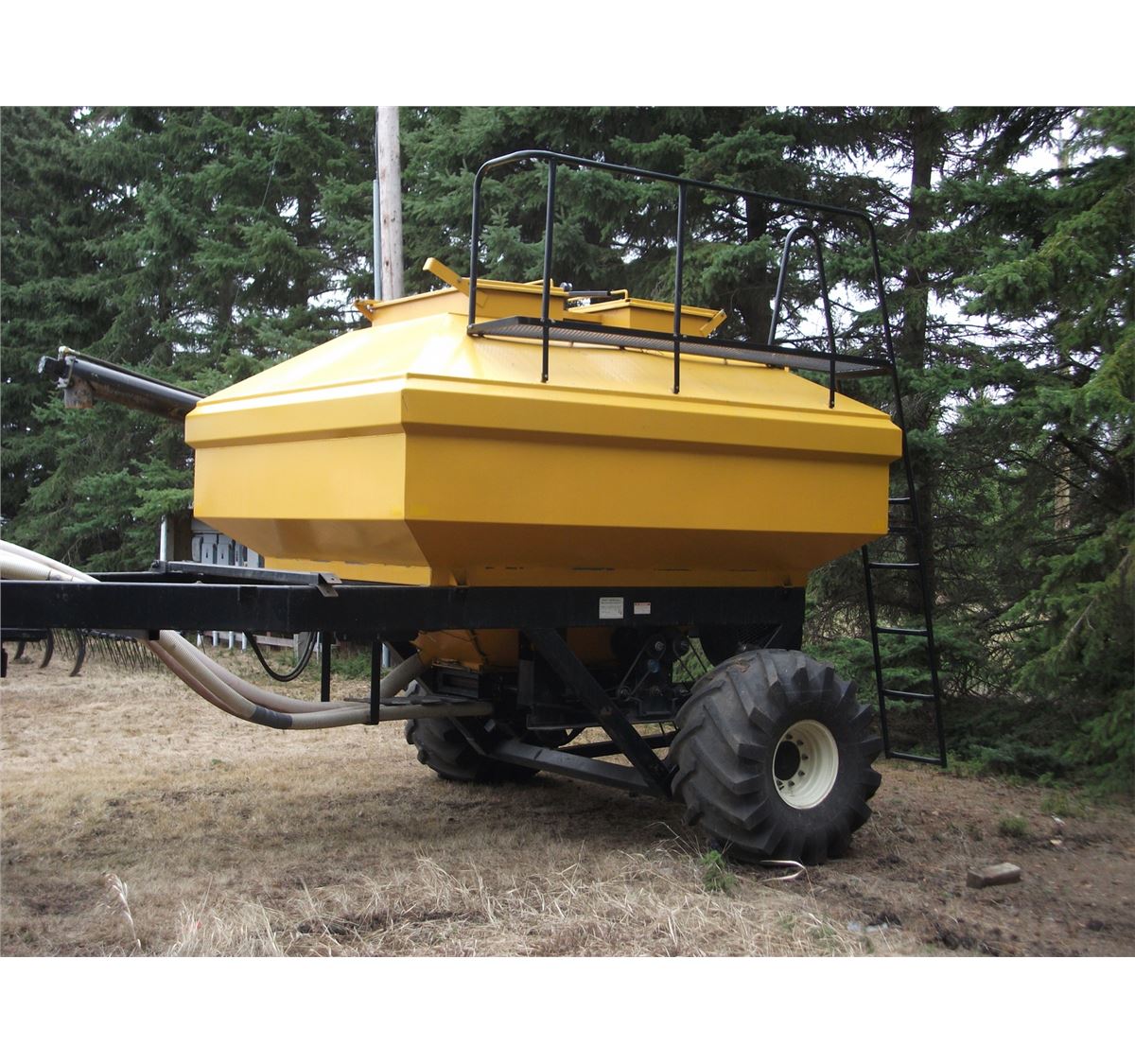 single shoot; c/w knock on sweeps; 250 bu ground drive cart; floating hitch; SN #not visible