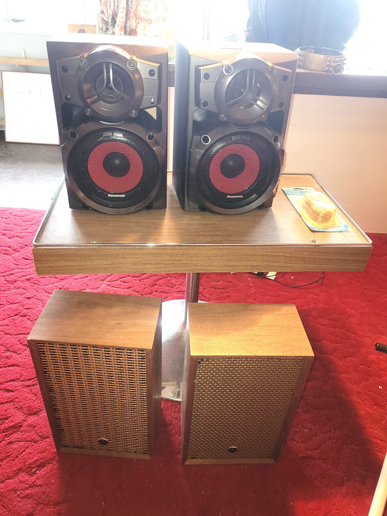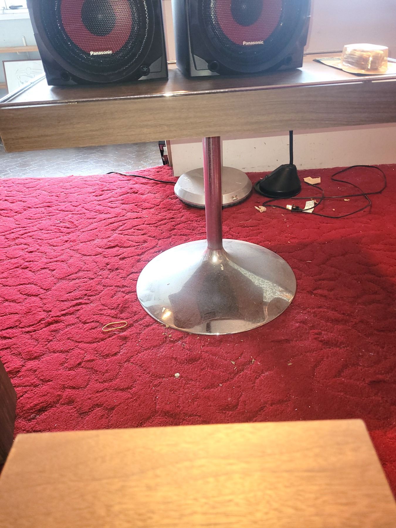 Table measures 27" wide. Speakers untested. Pick up 9-12:30.