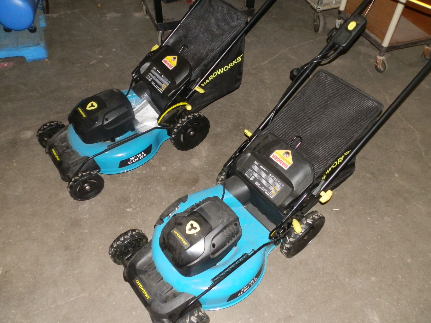 you get 2 Yard Works Electric Lawn Mowers, one runs good the other runs a little rough, could be a easy fix or used for parts, like new condition....