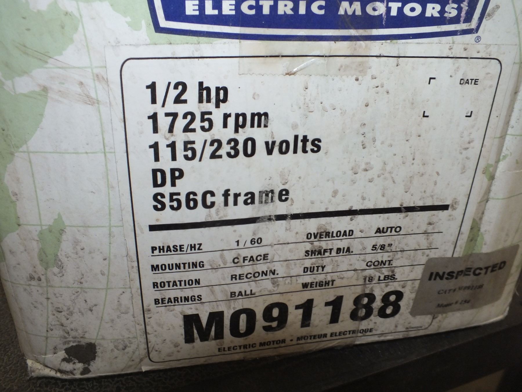 Electric Motor, 1/2hp, 1725 rpm, 115/230 volt...new
