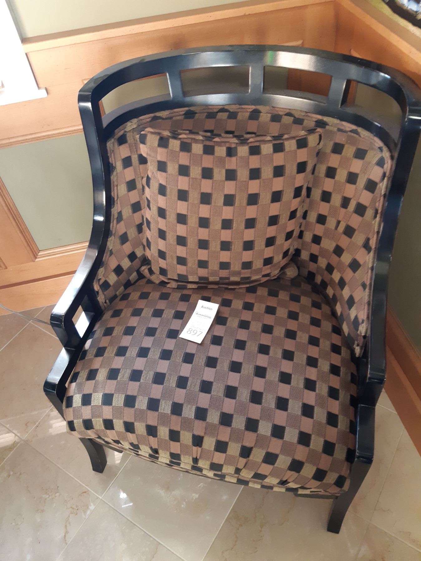 Rounded black chair with checkered coloured fabric 26x29x33 Pickup at 11:00 am