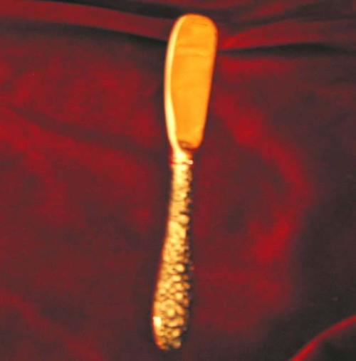 Eleven silverplated spreaders w/gold washed blades in "Repousee"