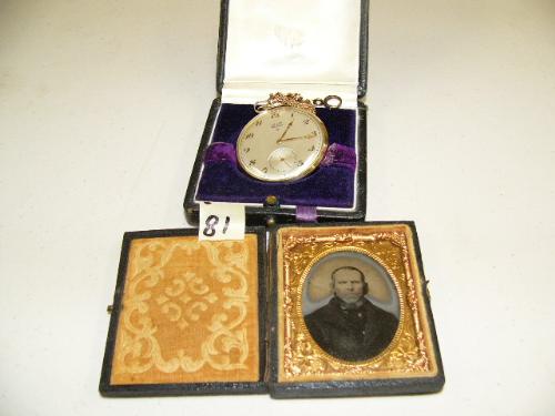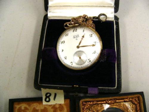 Elgin pocket watch, presented by Ford Motor Company, gold and old gold framed photograph (194)