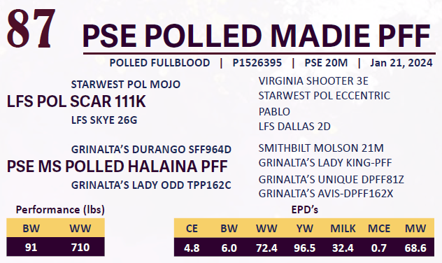 PSE POLLED MADIE PFF - 100% FLECKVIEH. - Bred AI Crossroad Tuxedo 222T, #P678330 March 29 2025. No exposure