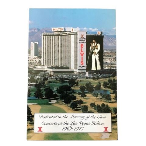 Elvis Presley Memories Poem Page with Hilton Commemorative Postcard. This postcard was distributed in Las Vegas at the famed Hilton hotel. The reverse side features a poem written by Presley's manager, Colonel Tom Parker. Elvis performed more concerts at the Hilton location than any other venue.