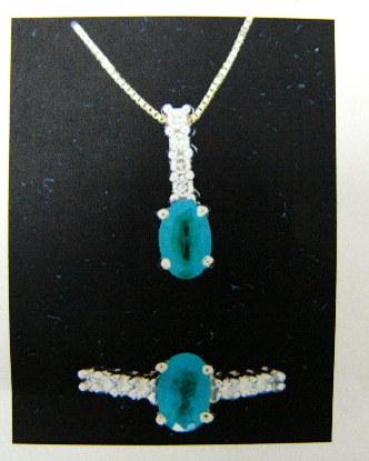 Emerald and Diamond Ring, Pendant and Chain Set, 14 K yellow gold- emeralds are oval, faceted, approx. 0.75 carats, semi-translucent, and medium green; diamonds are full cut, approx. 0.10 carats, SI3 clarity, and J color- estimated retail replacement cost $1,450 (12)