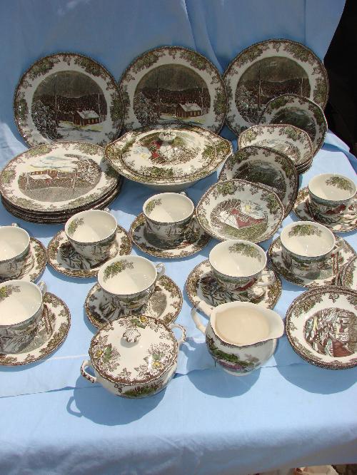 English Transferware "The Friendly Village" by Johnson Bros., service for 8