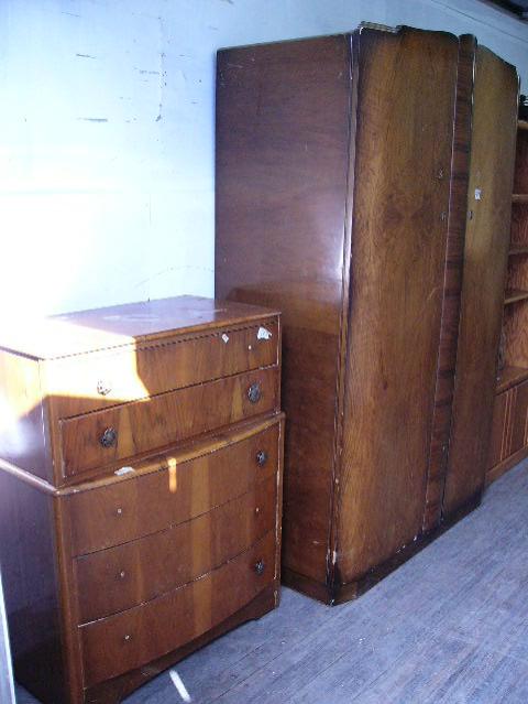 English walnut chest of drawers; 2-door wardrobe; leather coat from Salt Lake Olympics in 2002 (58)