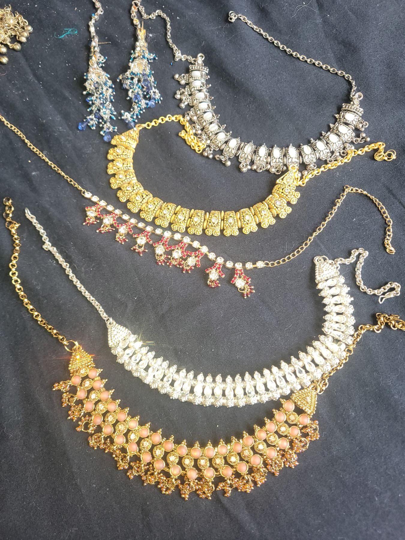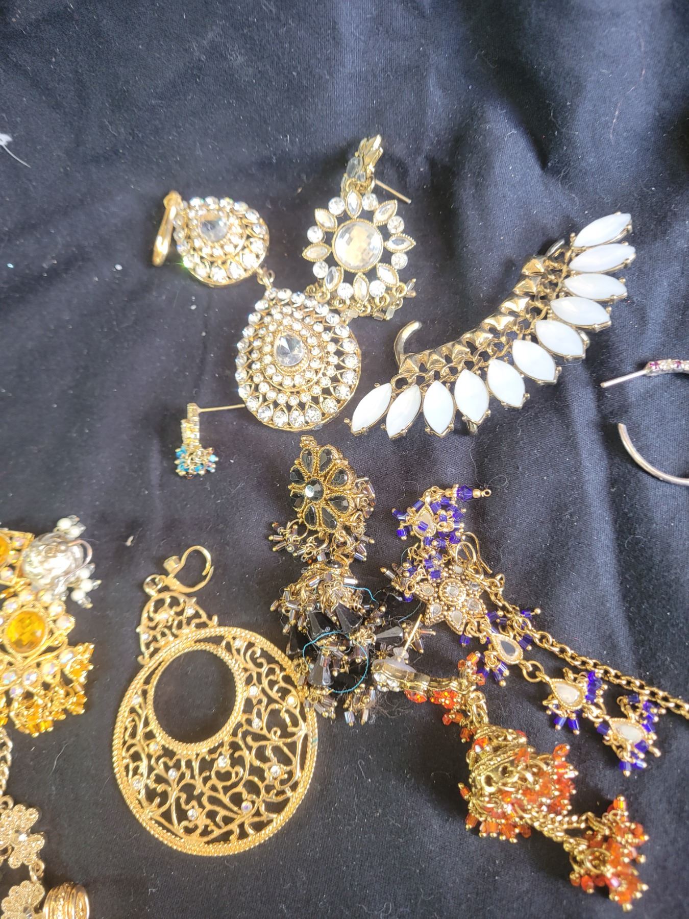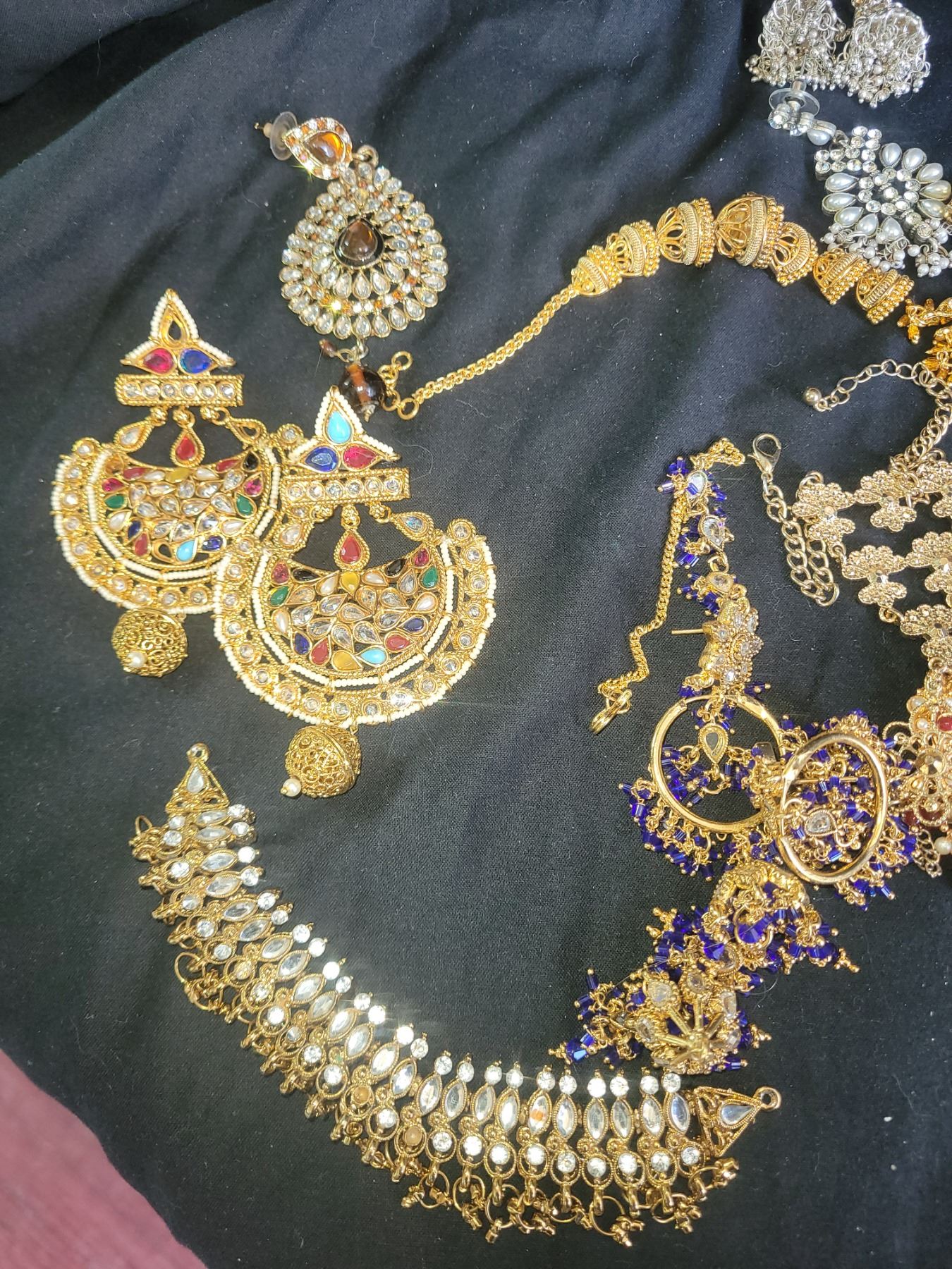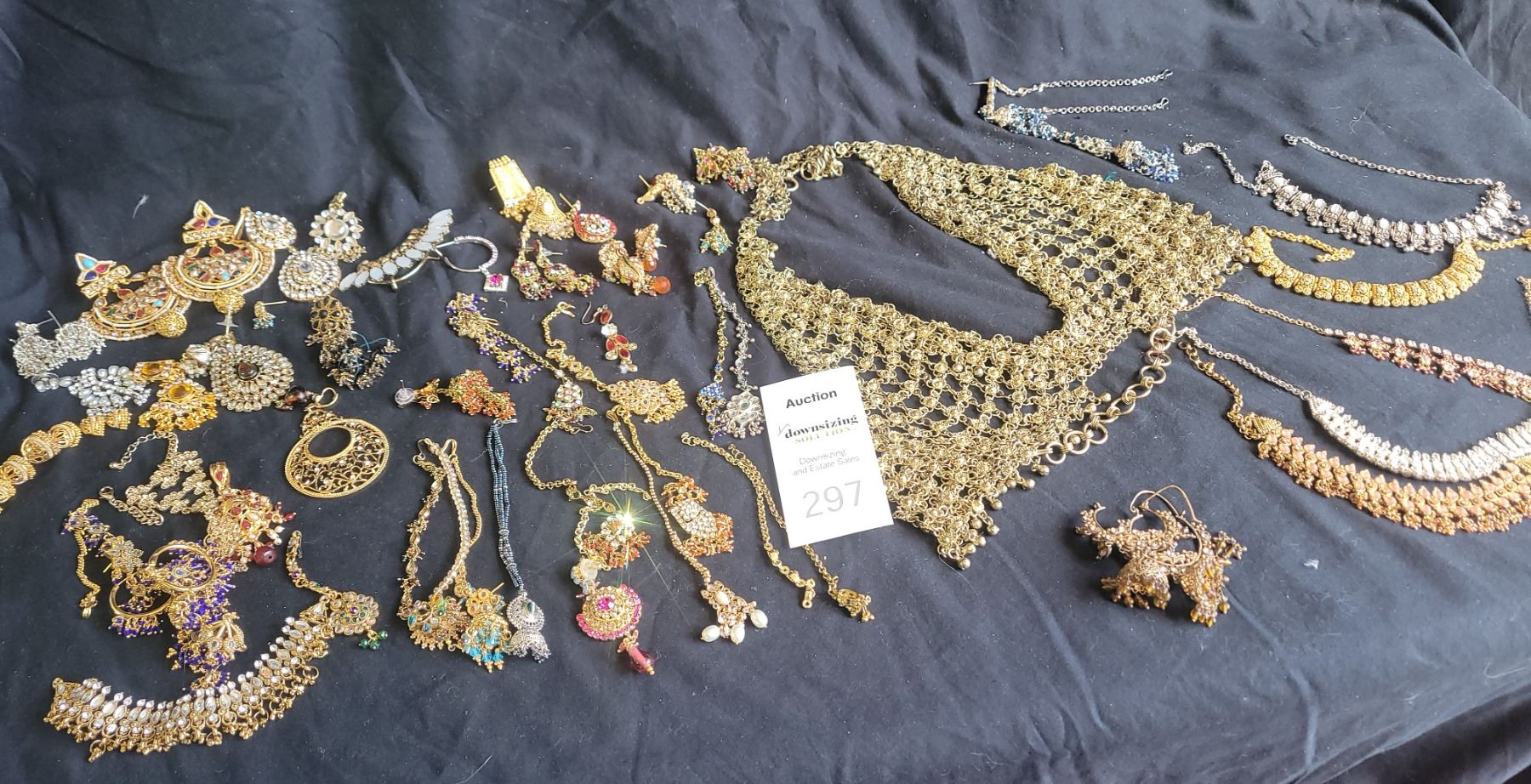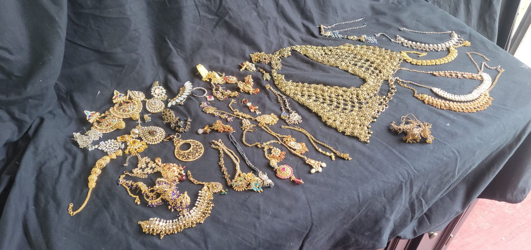 Metal mesh bra & large collection of ethnic jewelry. Pickup at 9 am