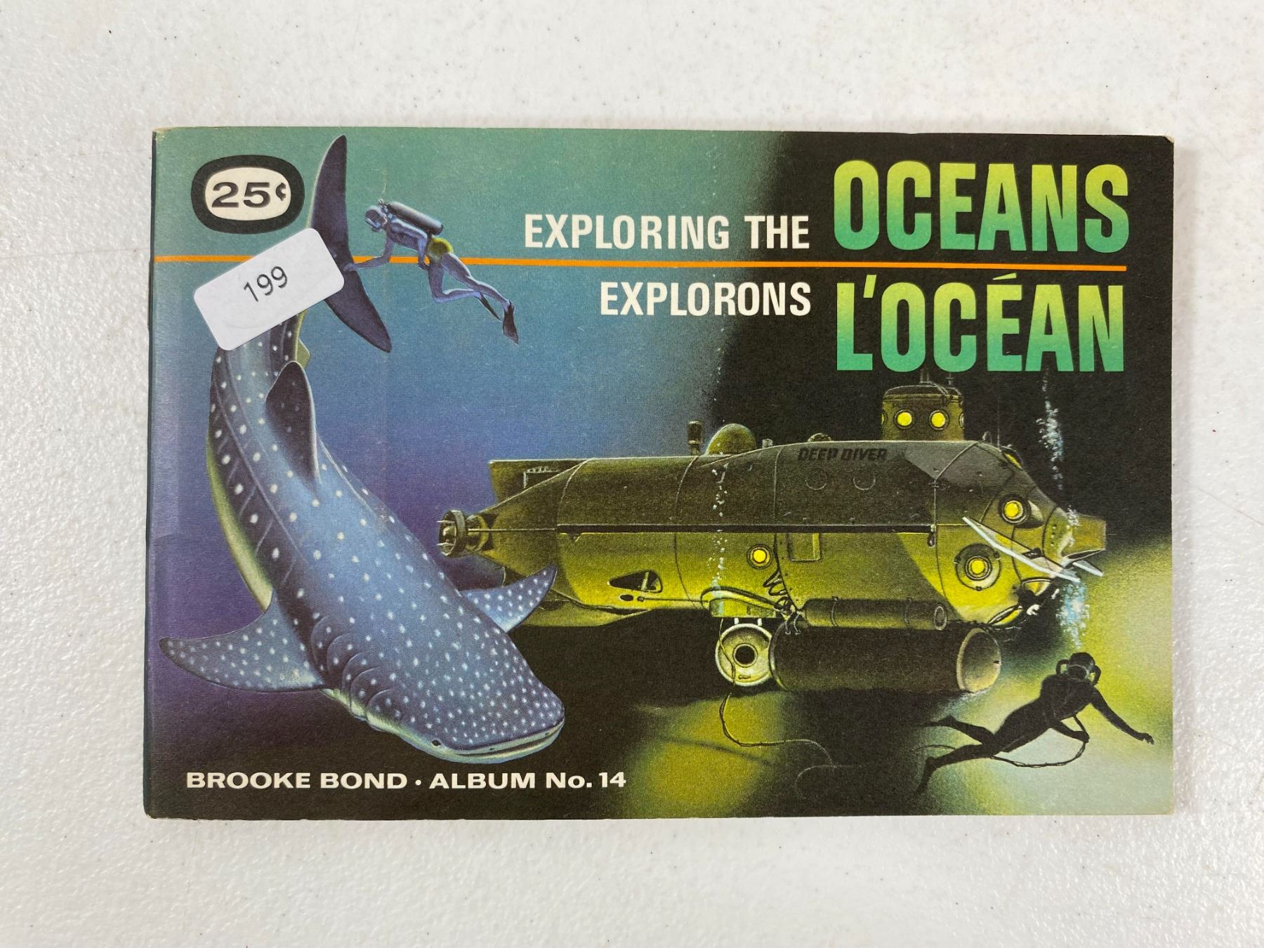 Colourful Brooke Bond 'Exploring the Oceans' album showcasing deep‑sea exploration, marine wildlife and early submersibles. A great collectible for ocean lovers and tea card collectors. Age wear consistent with vintage paper. Appears complete or mostly complete based on included cards.