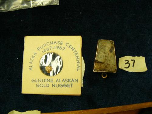 Extremely rare quartz with gold flecks banded with gold in shape of sluice box pendant - probably turn of the century Nome, and small raisin shaped gold nugget (140)