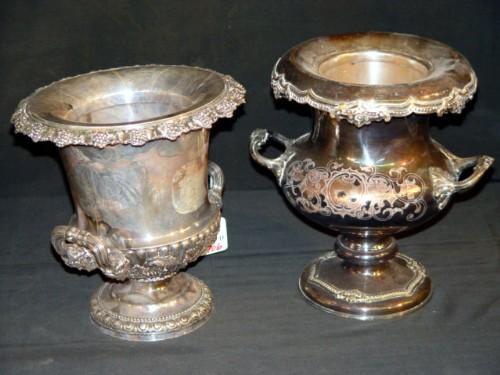 FANCY VICTORIAN SILVERPLATED CHAMPAGNE COOLERS- 2 X THE MONEY, PROVENANCE ANN FARMAN ESTATE