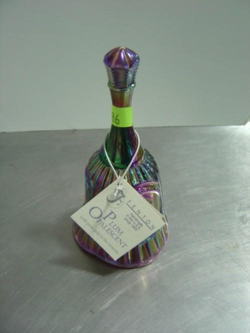 FENTON GLASS BELL; PLUM OPALESCENT EMBOSSED FRANK L FENTON ON SIDES