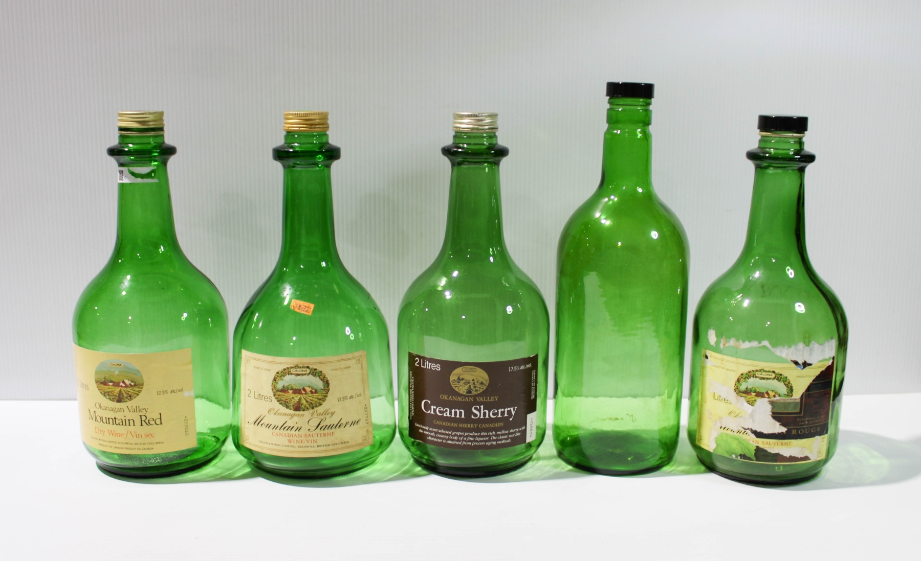 FIVE VINT. 2L GREEN GLASS WINE JUGS