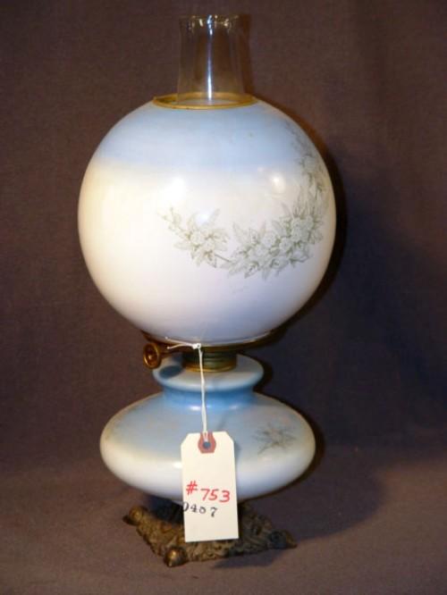 FLORAL DECORATED BLUE & WHITE GONE WITH THE WIND LAMP 14" HIGH