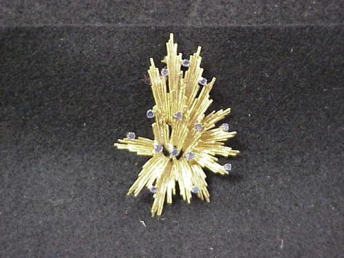 FLORAL SPRAY WITH 14 SAPPHIRES BROOCH 18K MARKED 750