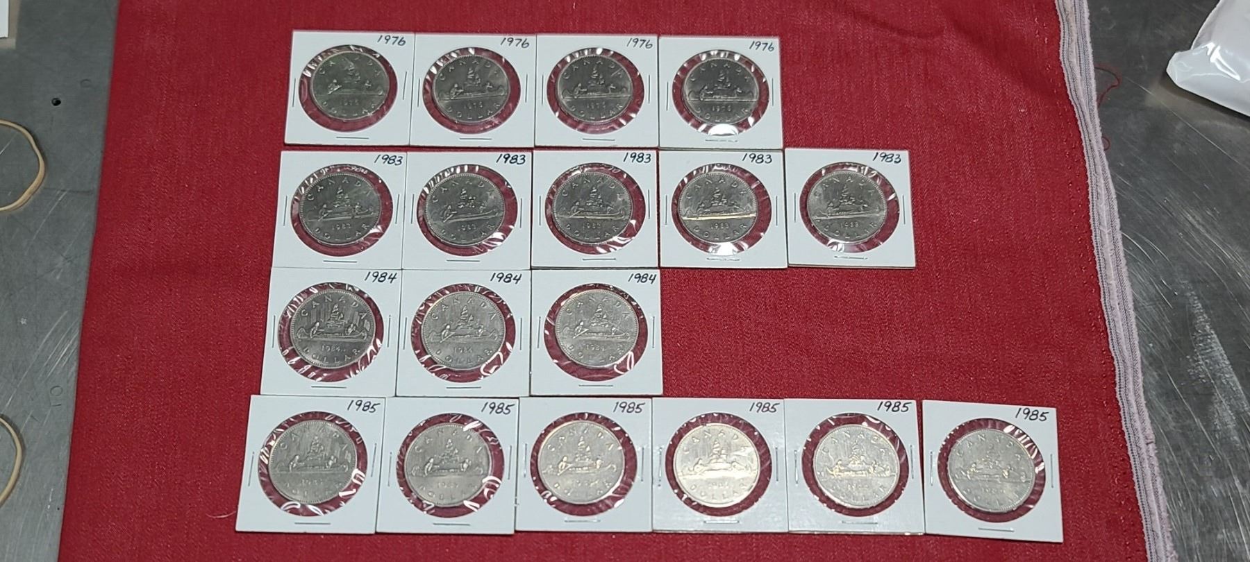FOUR 1976, FIVE 198, THREE 1984, SIX 1985 $1 COINS