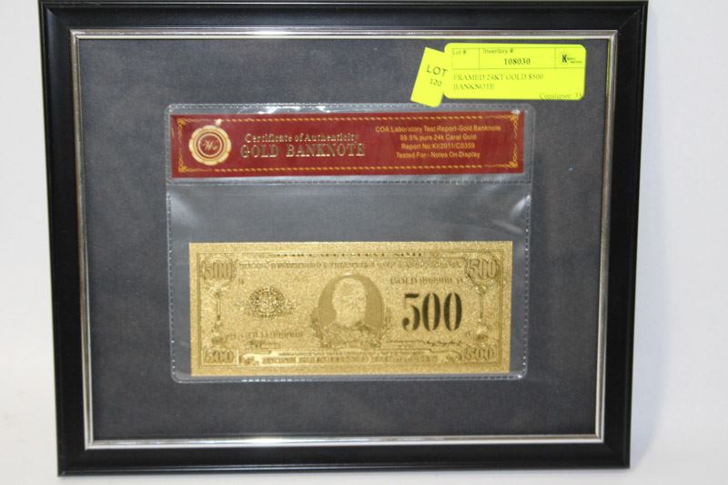 FRAMED 24KT GOLD FOIL $500 BANKNOTE