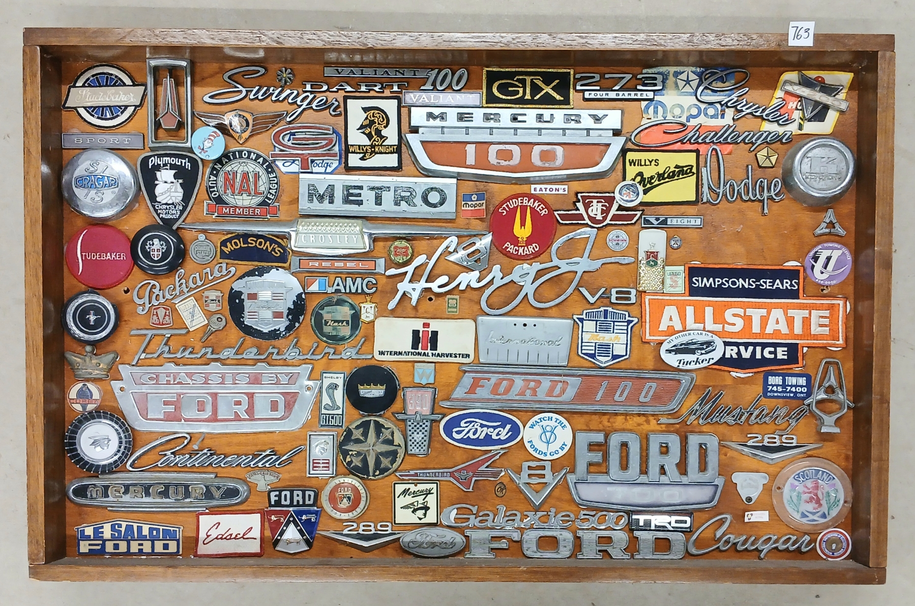 FRAMED AUTO INSIGNIA - INCL COUGAR, MUSTANG, DART, SWINGER, ETC
