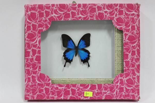FRAMED BLUE AND BLACK BUTTERFLY