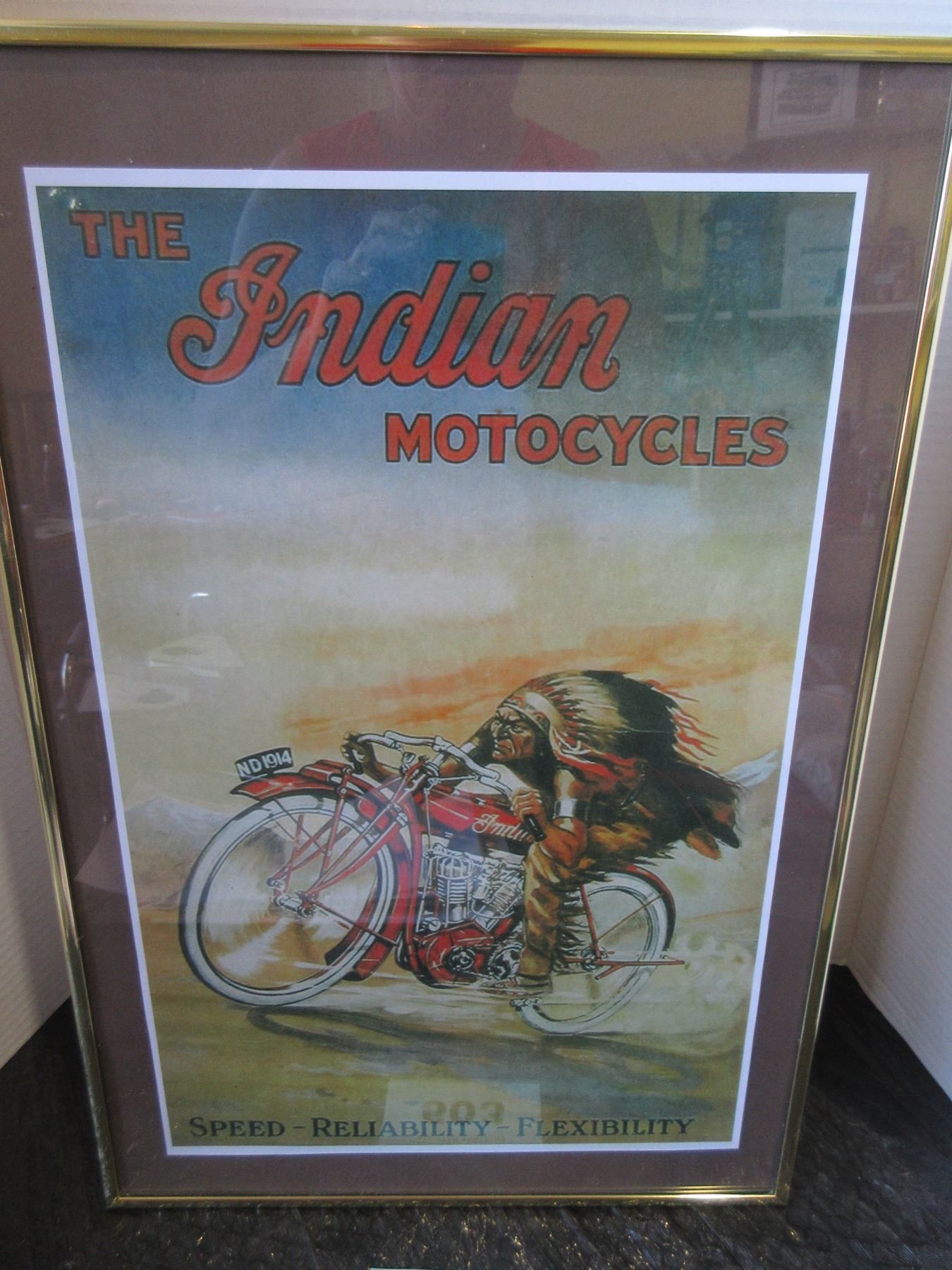 FRAMED INDIAN MOTORCYCLE PICTURE (APPROX. 13" X 19")