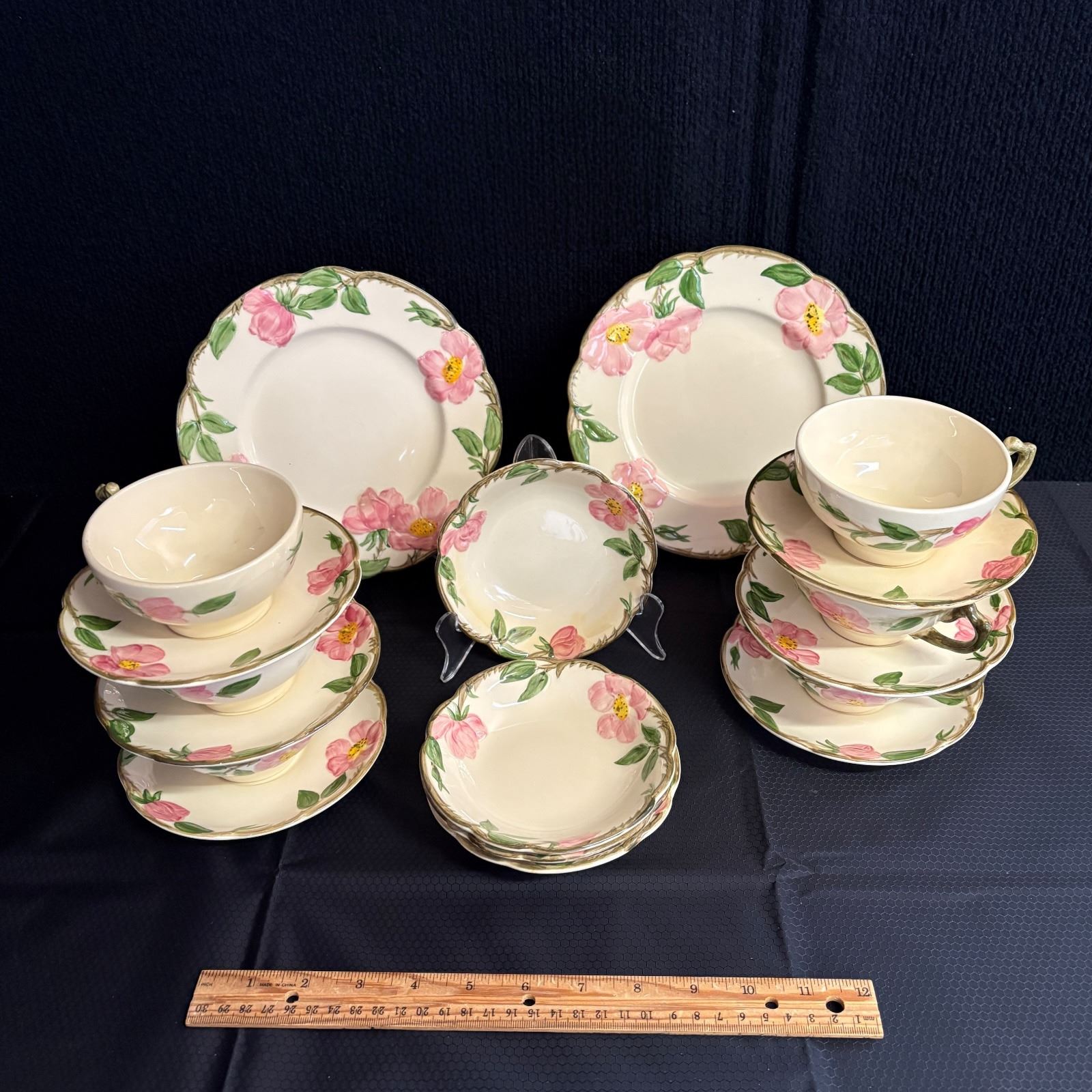 2 small plates, 4 dessert bowls, 6 each cups and saucers