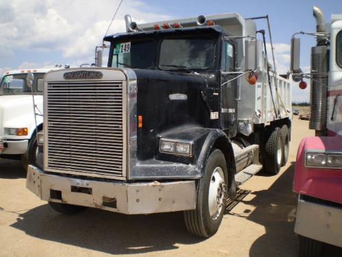 1988 FREIGHTLINER FLC-12064 T/A DUMP TRUCK, s/n 1FUYYCYB5JP315784: CUMMINS NTC350 DIESEL ENGINE, FULLER 9 SPD. TRANS., 14ft. BOX, SPRING SUSPENSION