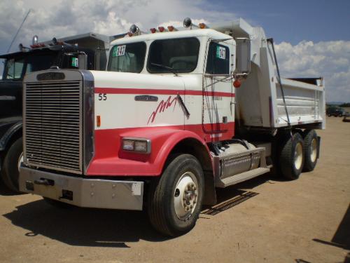 1988 FREIGHTLINER FLC-12064 T/A DUMP TRUCK, s/n 1FUYYCYB6JH314640: CUMMINS NTC350 DIESEL ENGINE, FULLER 9 SPD. TRANS., 14ft. BOX, SPRING SUSPENSION