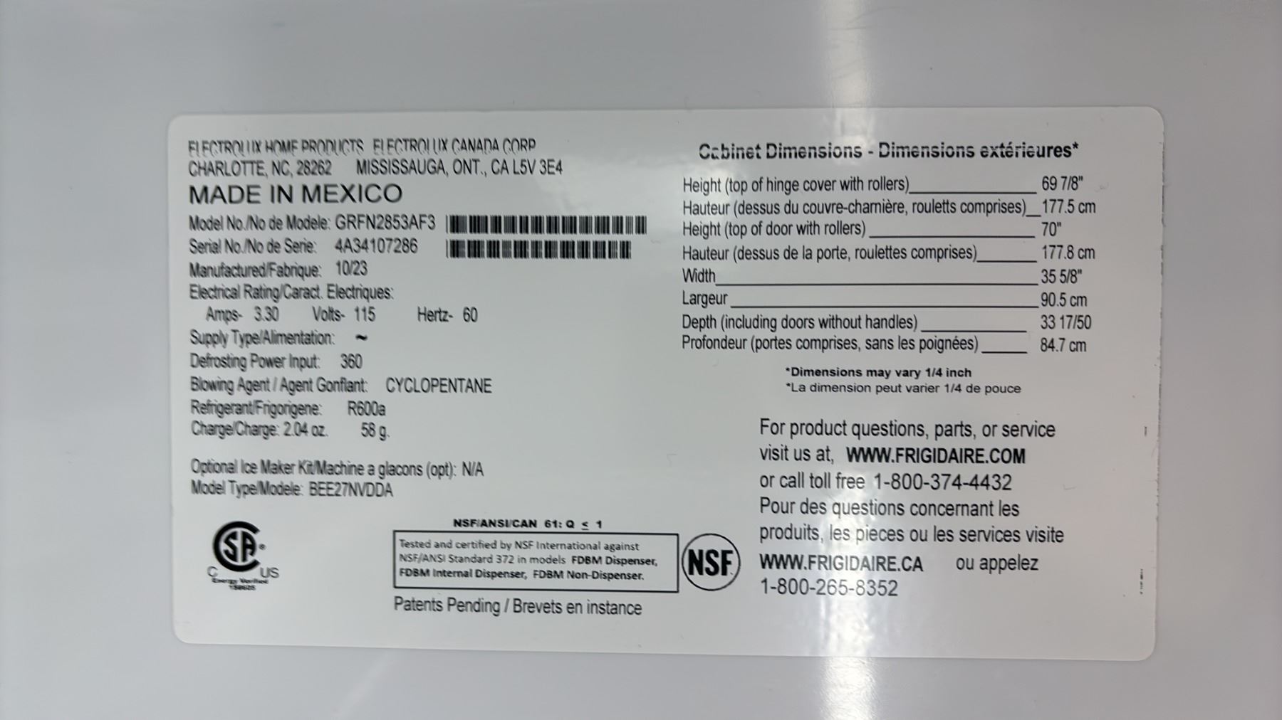 FRIGIDAIRE GALLERY 36"W STAINLESS STEEL FRENCH DOOR REFRIGERATOR WITH BOTTOM FREEZER