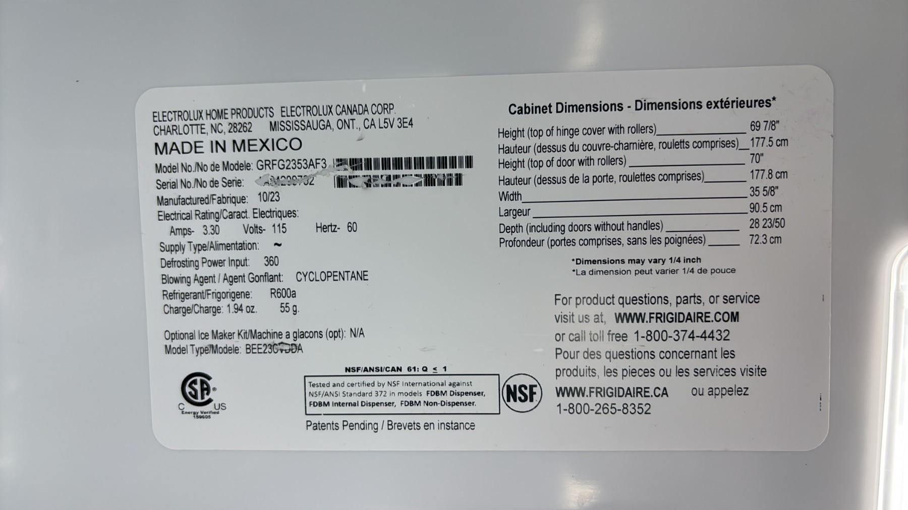 FRIGIDAIRE GALLERY 36"W STAINLESS STEEL FRENCH DOOR REFRIGERATOR WITH BOTTOM FREEZER