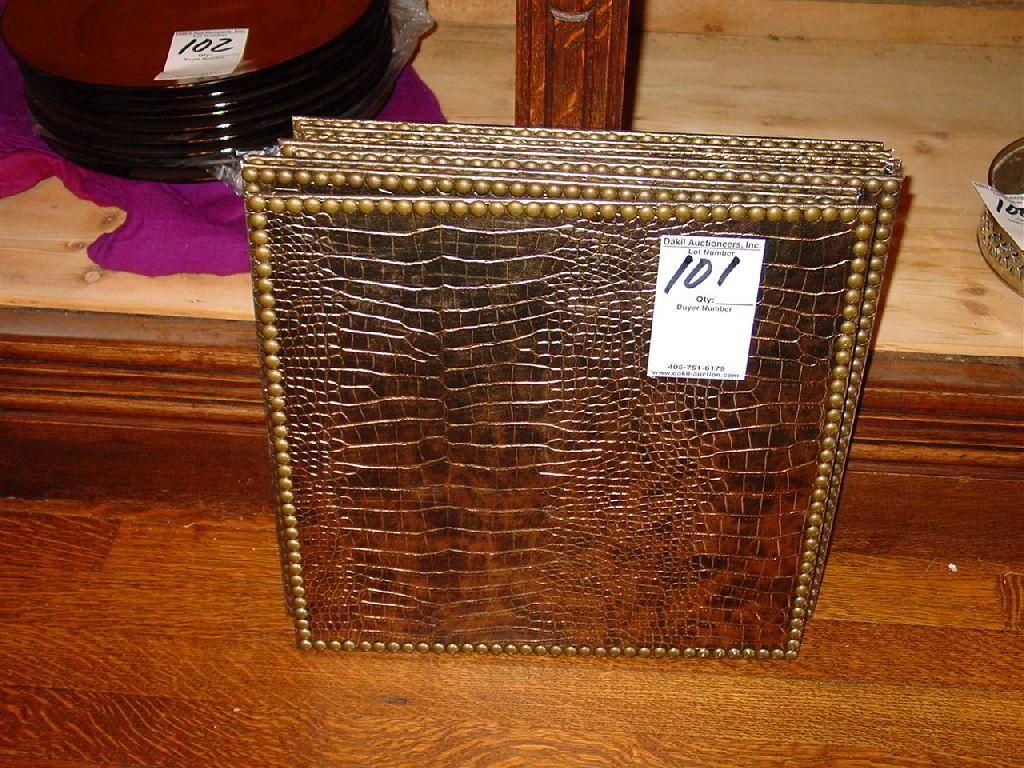 FROM HORCHOW LEATHER AND BRASS BRAD OVER-SIZED SQUARE PLACEMATS BRONZE/STAMPED CROCODILE PRINT