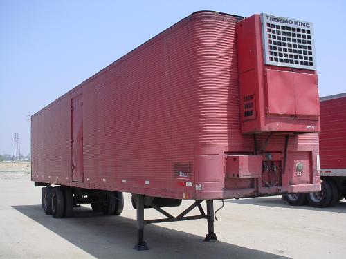1974 FRUEHAUF 45ft. X 96in. T/A ALUMINUM REEFER TRAILER, s/n MAR427285: THERMO KING SUPER REEFER, RIBBED SIDES, WOODEN FLOOR, ROLL-UP DOOR, LANDING GEAR, 10.00 X 20 TIRES, SPOKE WHEELS