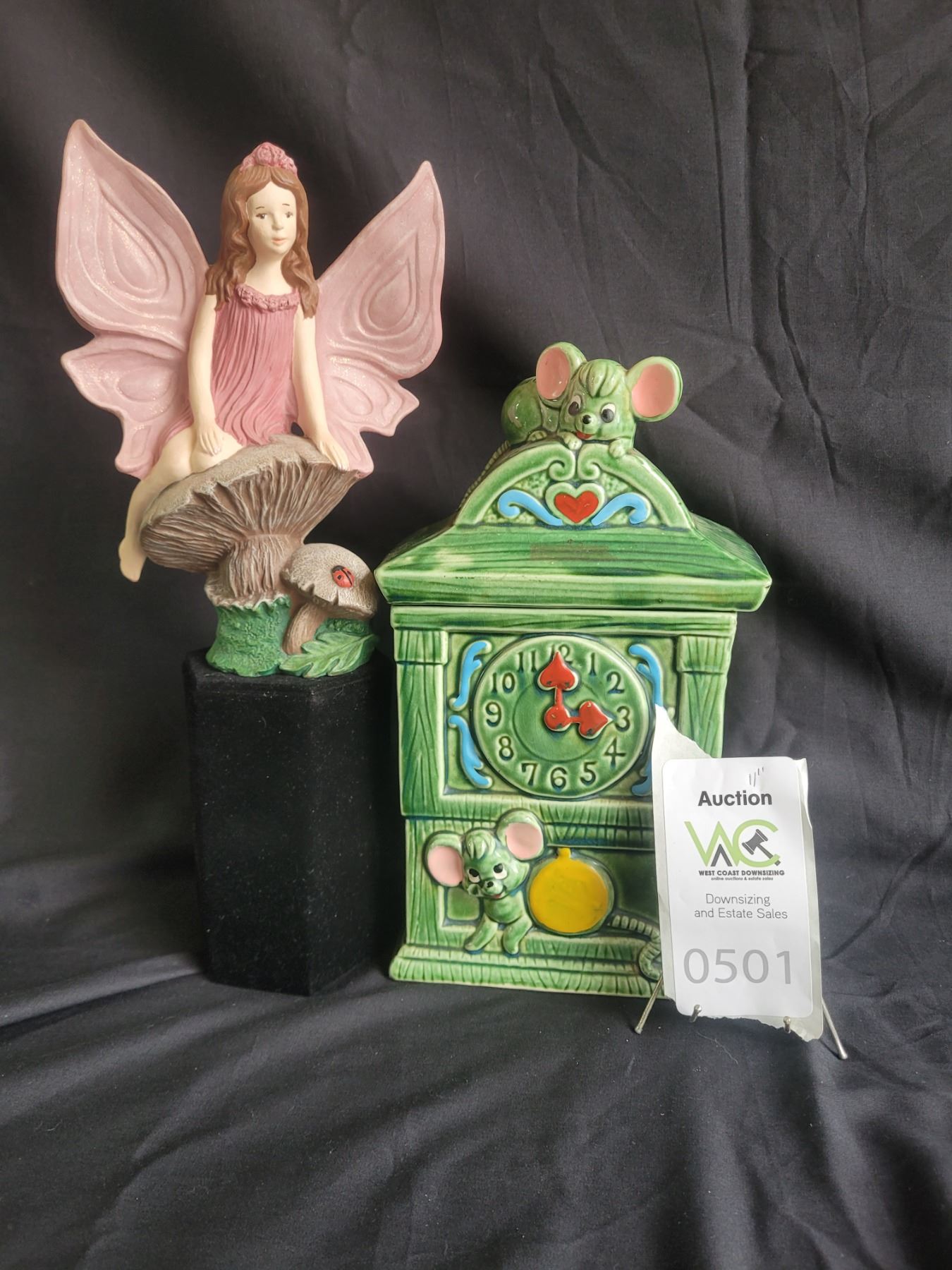 11" cookie canister and fairy. Pickup at 9 am