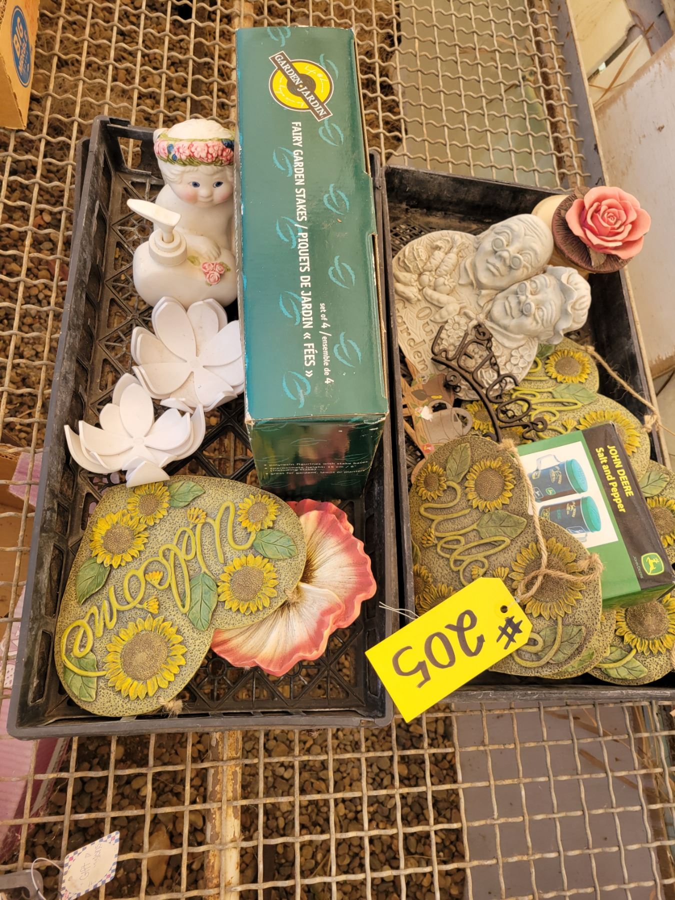 Fairy garden picks, angels welcome signs, John Deere salt/pepper stepping stones